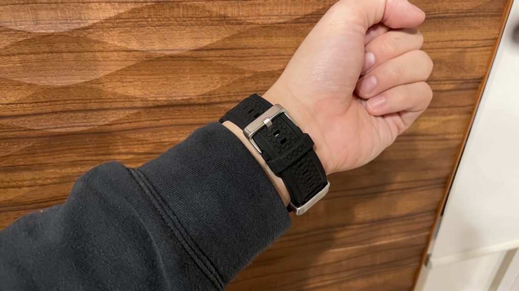 バックル部分もステンレス製なのか…?公式サイトの表記にはステンレスとシリコンしか素材が書かれていません。