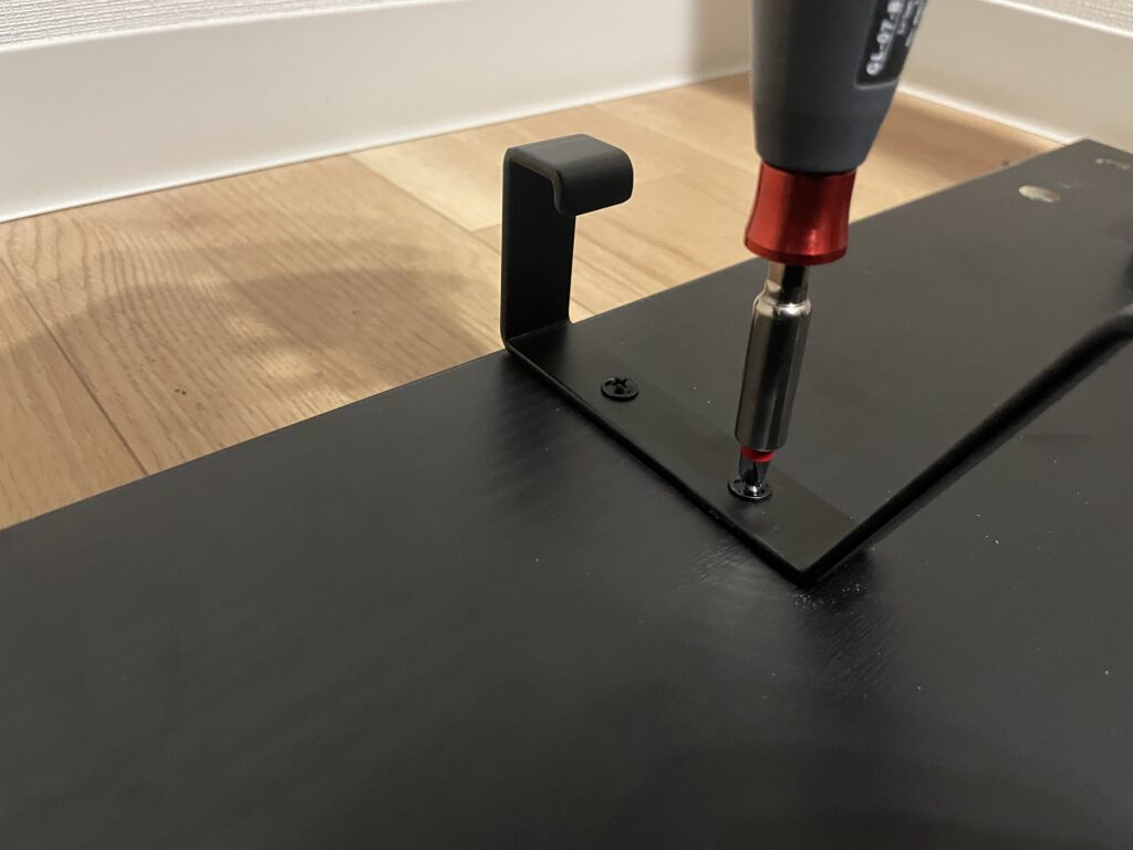 続いて穴をあけることができたら脚をネジで固定します。
