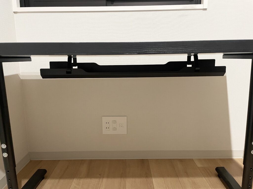 - デスク天板の裏に全てを収納するので足元スッキリ