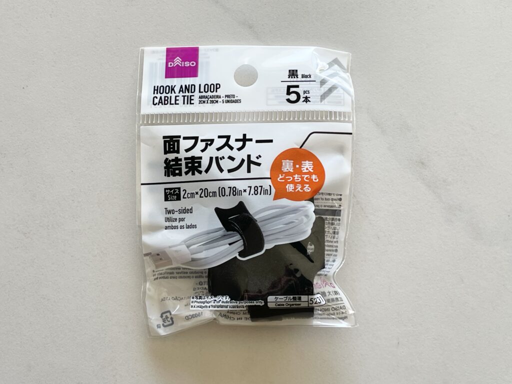 今回はダイソーで買ってきた。両面テープのマグネットプレートとマジックテープの結束バンドを使って配線整理していきます。よかったら使ってみてください。