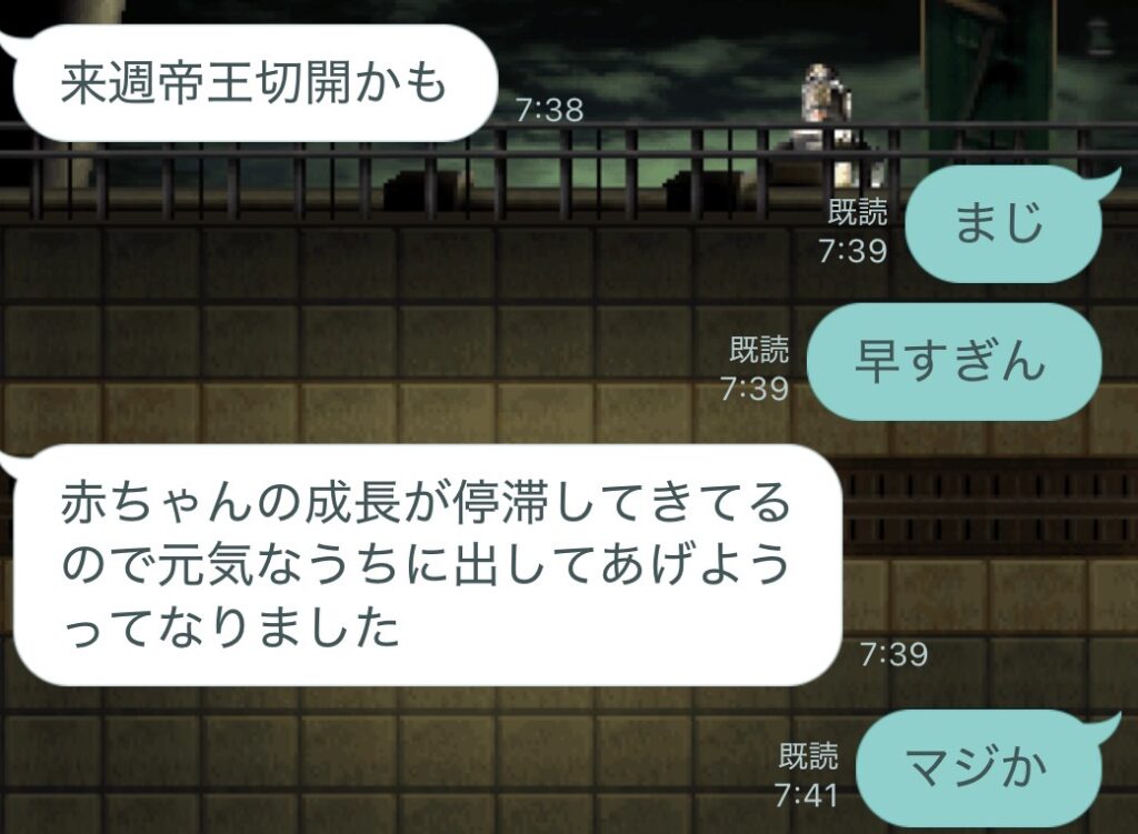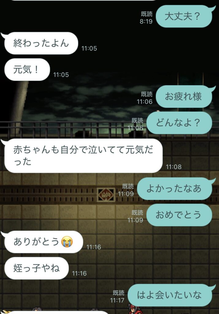 が安心したのも束の間、出産から一週間前に妹から飛んで来たLINEです。