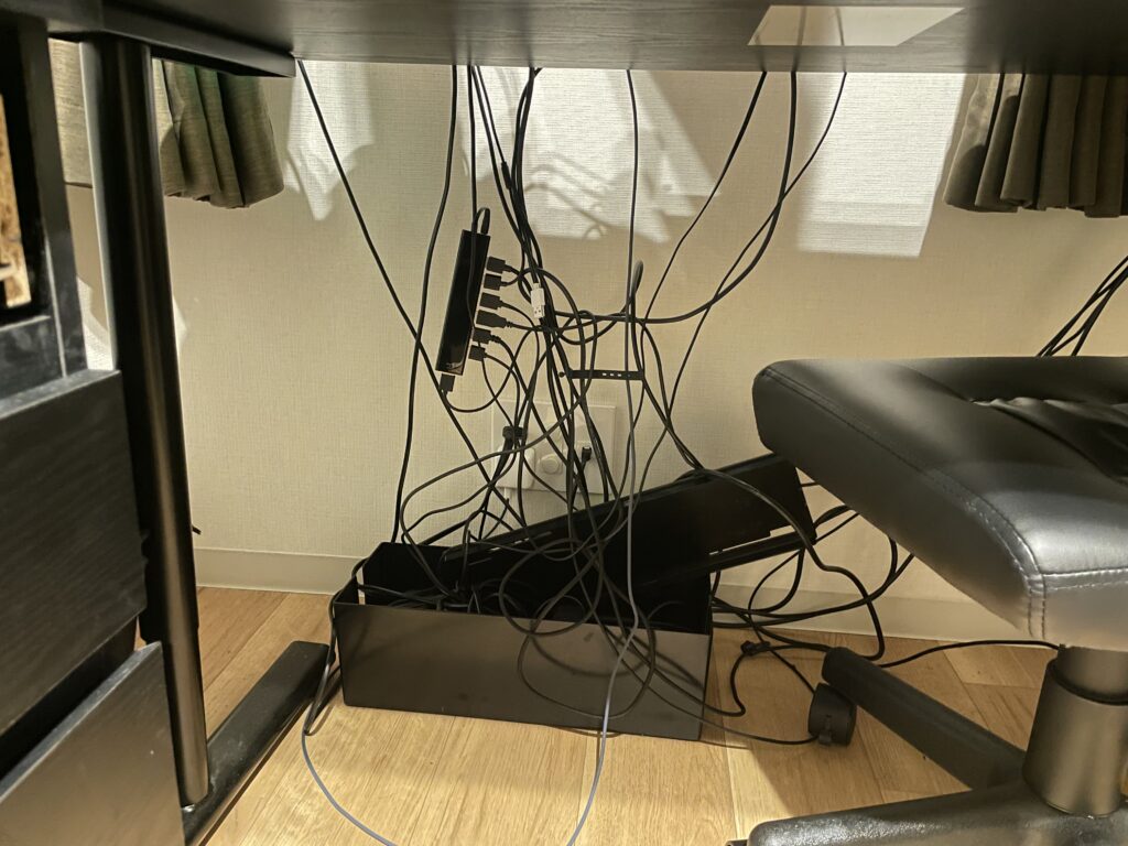 デスク天板に穴開けてネジ止めしてみたいと思ってます。初めてのDIYで緊張します。早く綺麗に整えたいですね!
